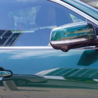 Tay nắm cửa cùng màu với thân xe. Cột chữ C được làm kính đen. Kèm với đó gương chiếu hậu cũng được làm cùng màu với thân xe, tích hợp đèn LED báo rẽ, Camera 360 & Cảnh báo va chạm trên gương cũng được tích hợp trên mẫu xe điện VF6.