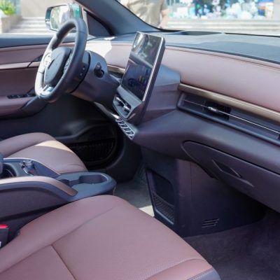 Nội thất xe được thiết kế đơn giản và hiện đại với màn hình giải trí cảm ứng 12,9 inch, màn hình hiển thị HUD, cần số điện tử, phanh tay điện tử.