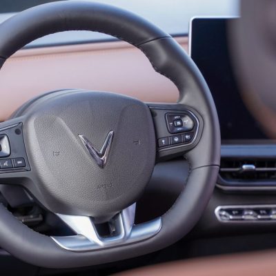 Vô-lăng 3 chấu được bọc da, thiết kế vô lăng của VF6 dạng vát đáy