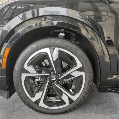 Ở phần thân xe VinFast VF9 có la zăng khủng hơn các đối thủ khi sở hữu bộ vành lớn 21 inch. VF9 còn có 1 chi tiết đáng chú ý khác là phần kính ở hông xe được tách làm đôi ở cột C bởi logo chữ “V” của VinFast.