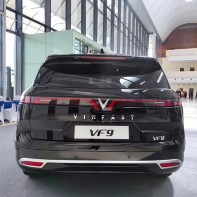 Đuôi xe VinFast VF9 nổi bật với đèn hậu LED có tạo hình dạng chữ “V” kéo dài rất quen thuộc khi đã xuất hiện trên Lux SA2.0. Dải LED trên VF9 được làm dày bản hơn để phù hợp với ngoại hình đồ sộ của VF9. Phía trên cao là cánh lướt gió cỡ lớn mang đến cái nhìn khoẻ khoắn, đồng thời góp phần cải thiện tính khí động học.